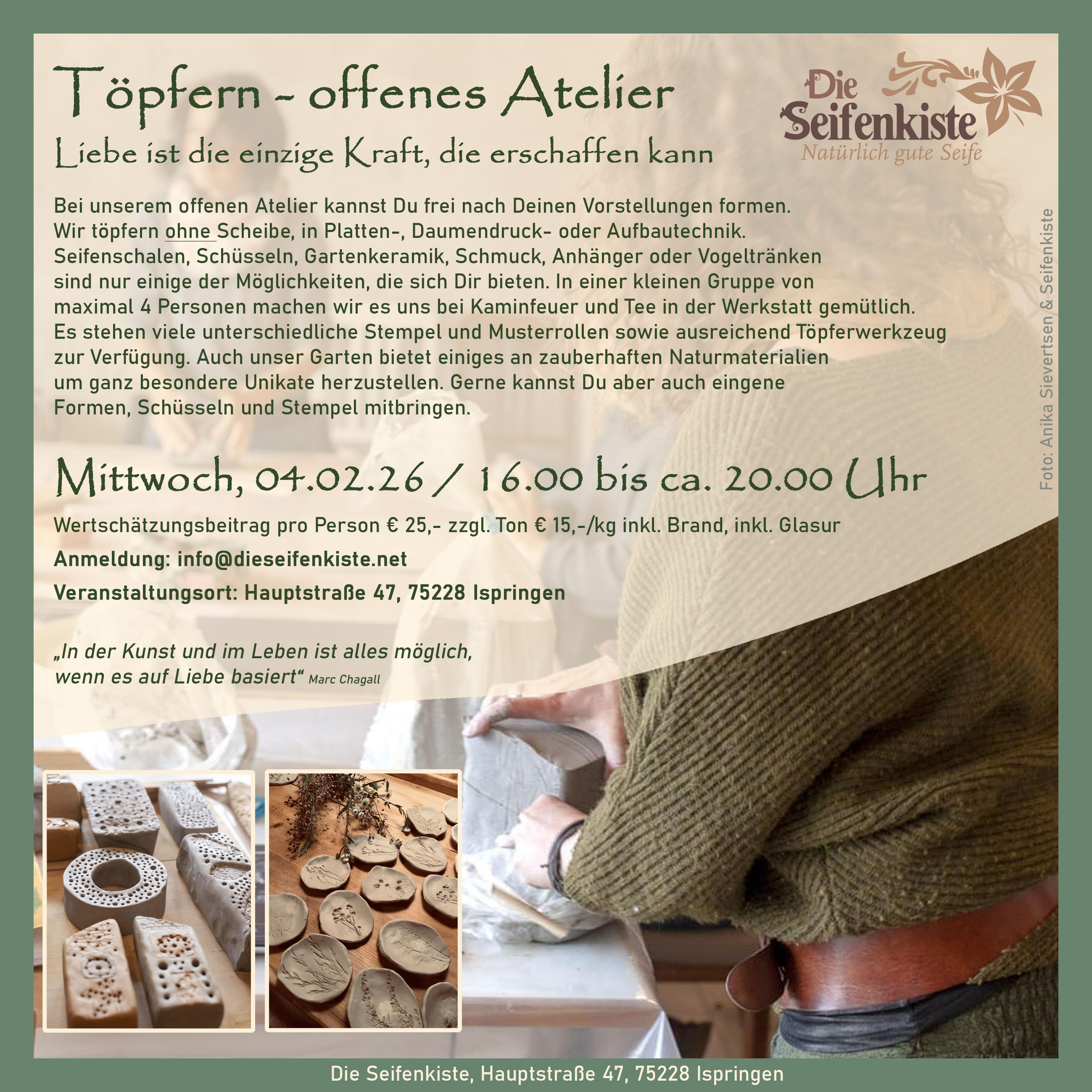 Mittwoch, 04. Februar 2026 - Offenes Atelier – Töpfern ohne Scheibe